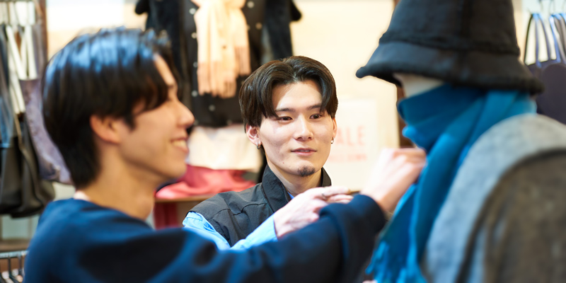 就職活動の中で「自分がいちばん好きなことは何だろう」と考え、洋服に関わる仕事がしたい!と思いました。販売員やメーカーなどさまざまありますが、私はいろんなジャンルの服に触れながら、知識を幅広く身につけたい気持ちが強かったんです。